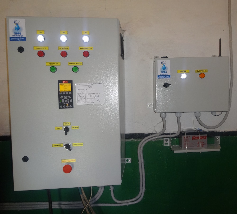 В случае если насосов несколько, шкаф обеспечивает попеременную работу насосов. Это, во-первых, спасает от быстрого изнашивания, и не помогает заиливаться насосу.